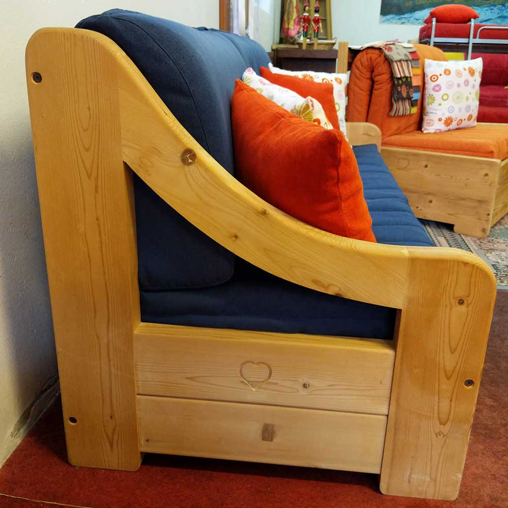 Divano lettoModello Billy In legno di abete naturale completo di due cuscinoni schienali...