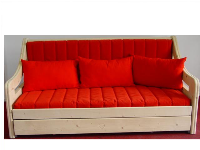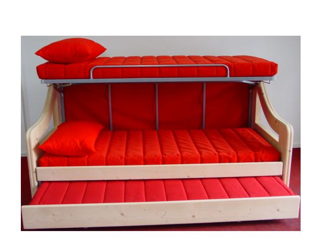Divano a tre posti disponibile nelle versioni matrimoniale, castello, due letti singoli e singolo.
